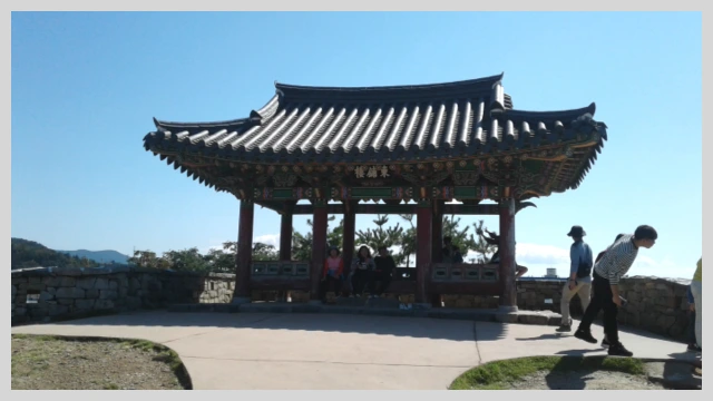 시멘트 엉성하게 문대 바른 골목길 지나 산 만디꺼정 올라가보이, 고색창연한 정자인지 누각인지 하나가 떠억 정좌하고설랑 저 아래 강구항 굽어보데예.