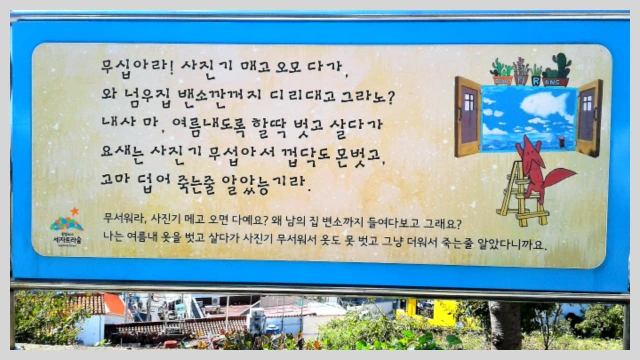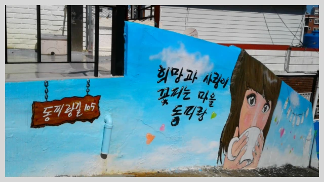 한때 철거 대상이었던 전형적인 달동네 옴닥옴닥 붙은 허름한 마을 집들을 벽화로 꽃단장시켜서리 관광거리로 만들어 내다니 세상 재주도 신통타!!