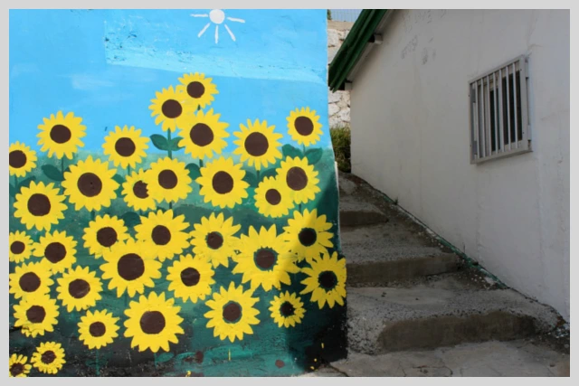 남루한 골목 살림 해처럼 밝혀지고 꽃처럼 피라고 응원보내는 해바라기꽃.