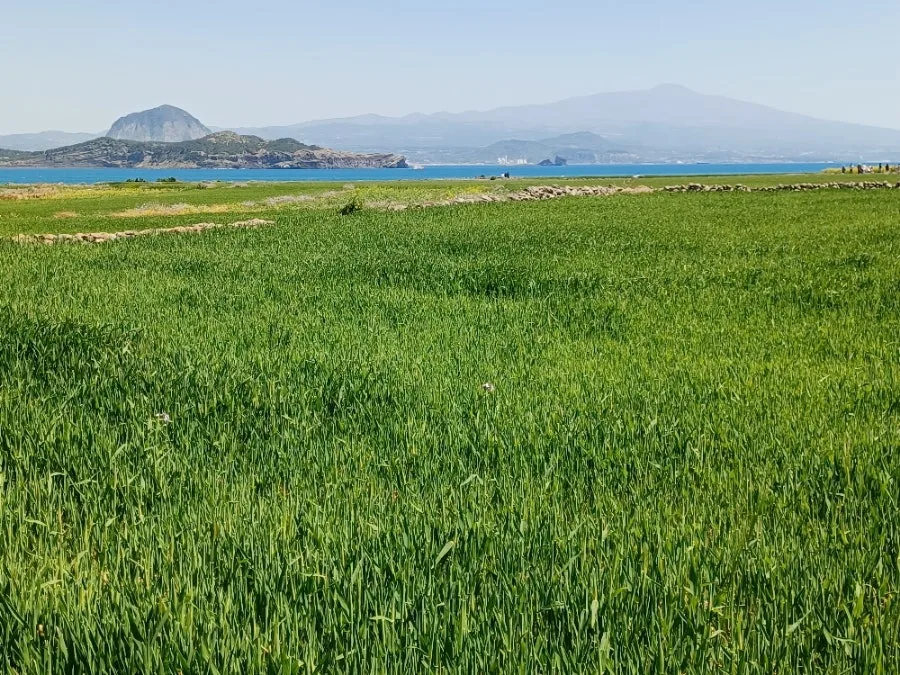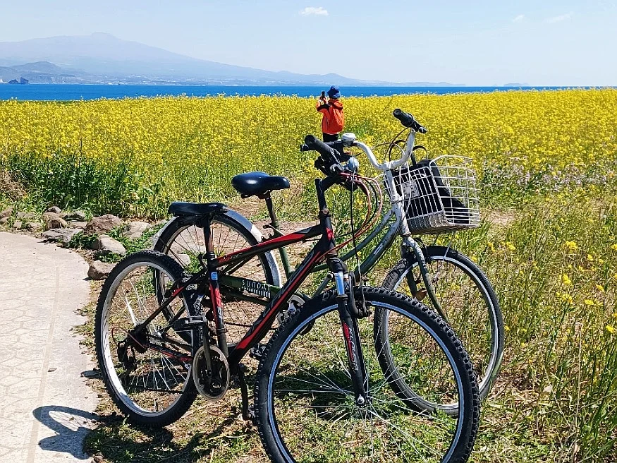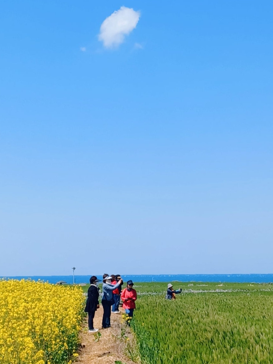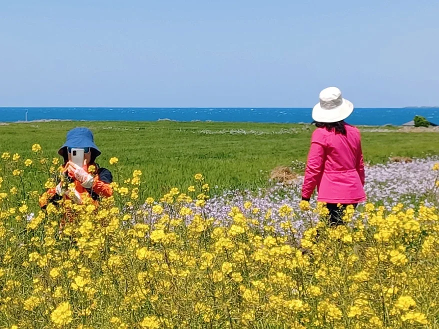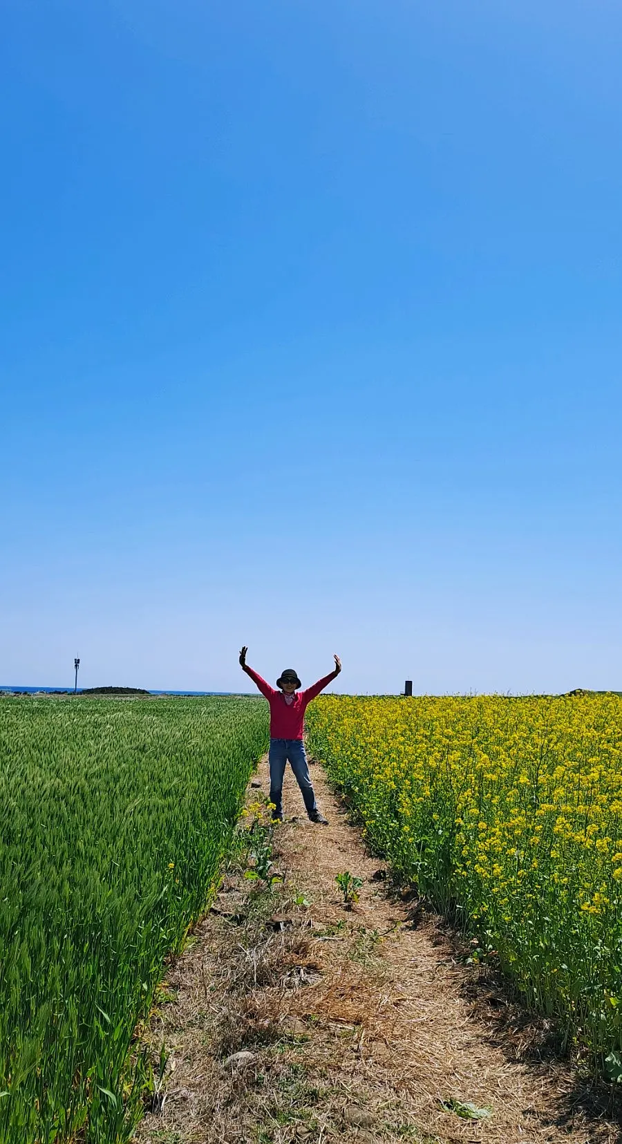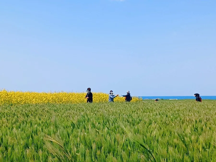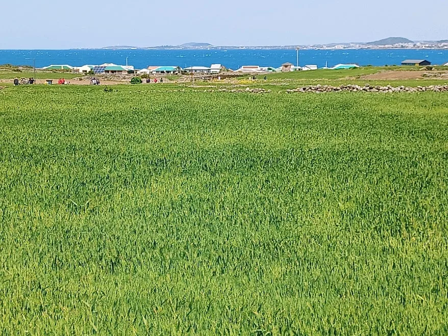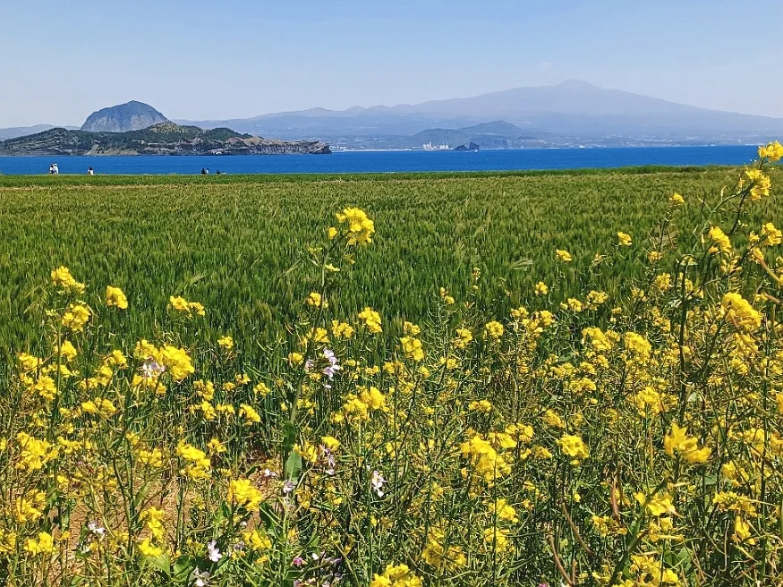 그 대신 한창인 유채꽃과 청보리의 보색대비 선명한 유화 캔버스 눈부시게 아름다웠다.