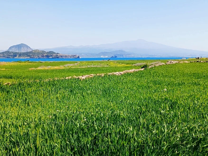 검은 돌로 쌓아 올린 밭담 경계는 그린& 옐로가 빚어내는 하모니 한층 격을 높여주었고.