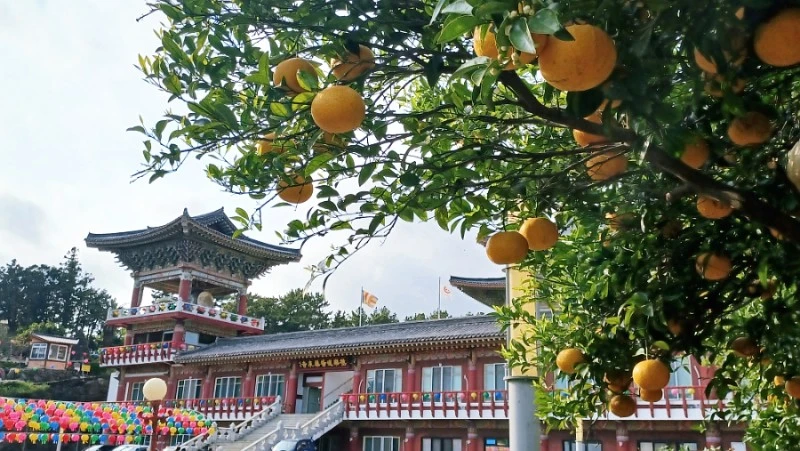 지난번 도반과 찾았을 때 약천사는 새파란 동천 아래 노란색 하귤이 풍선처럼 두둥실 떠 있었다.