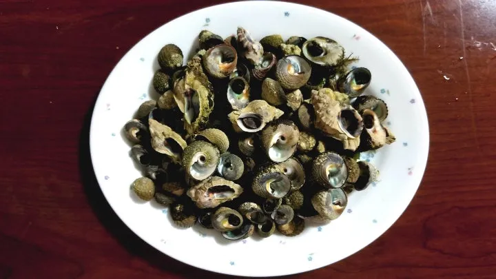 저녁 식탁은 해녀 집에서 산 전복 곁들여 물미역 초장 무침에 삶은 보말 한 접시까지 용궁 잔칫상이더라고요.