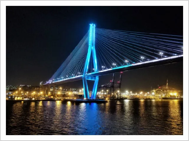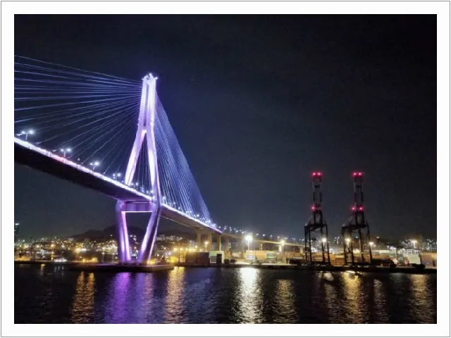 그중에서도 부산항 터미널에서 바라보는 부산항 대교는 시시각각 색상이 변하는 조명발로 가히 황홀경을 빚어낸다.