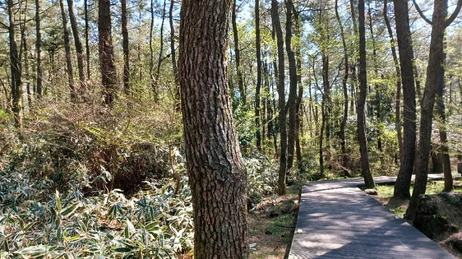 울창한 삼나무 숲이 자연림으로 연결되는 데크길 외에 나무계단 흙길 탐방로 잘 조성돼 있었다.