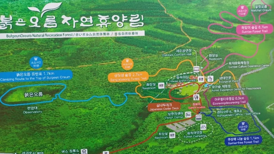 자연휴양림일랑 우측에 떨구고 곧장 무장애 나눔숲길 탐방로로 들어섰다.