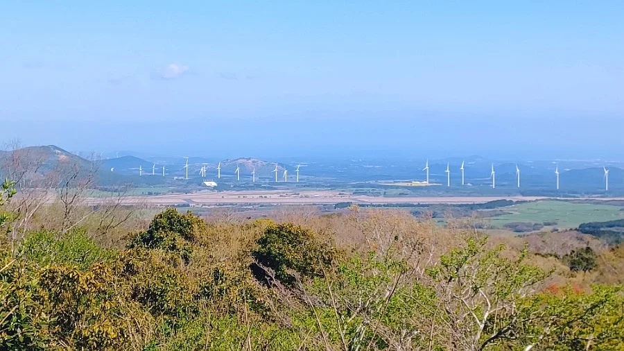풍차가 있는 동쪽 마을은 가시리로, 따라비오름 큰사슴오름 족은사슴오름이며 조랑말공원 유채꽃플라자 정석비행장도 보인다.