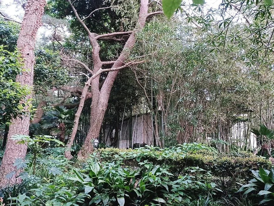 바로 위 사진, 대숲에 가리어진 창고같이 초라한 건물이 바로 이 박사 별장 화락원이다.