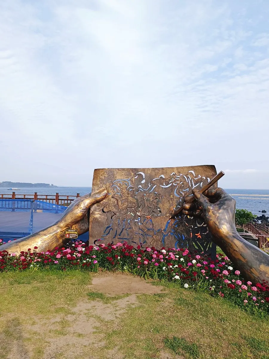 공원에 조성돼 있는 조각품과 시비 일별한 뒤 용천수가 솟는 담수풀장까지 내려가질 않고 서복전시관 쪽으로 설렁설렁 걸어갔다.