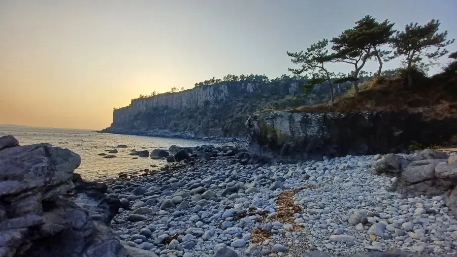 서녘 노을 속에 수직 벼랑 풍경 명징하게 드러나는 박수기정 실루엣은 채석장에서 단숨에 떠낸 대리석 같다.