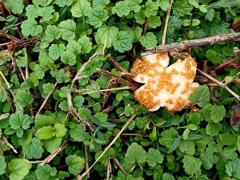 풀잎들 사이로 흰 버섯 비슷한 쓰레기가 널브러져 있기에 다가갔다.