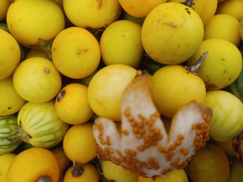 언뜻 보기에 익기 전의 열매는 마치 아기 수박 같고 다 익으면 노란색 구슬같이 예쁘게 생겼다.