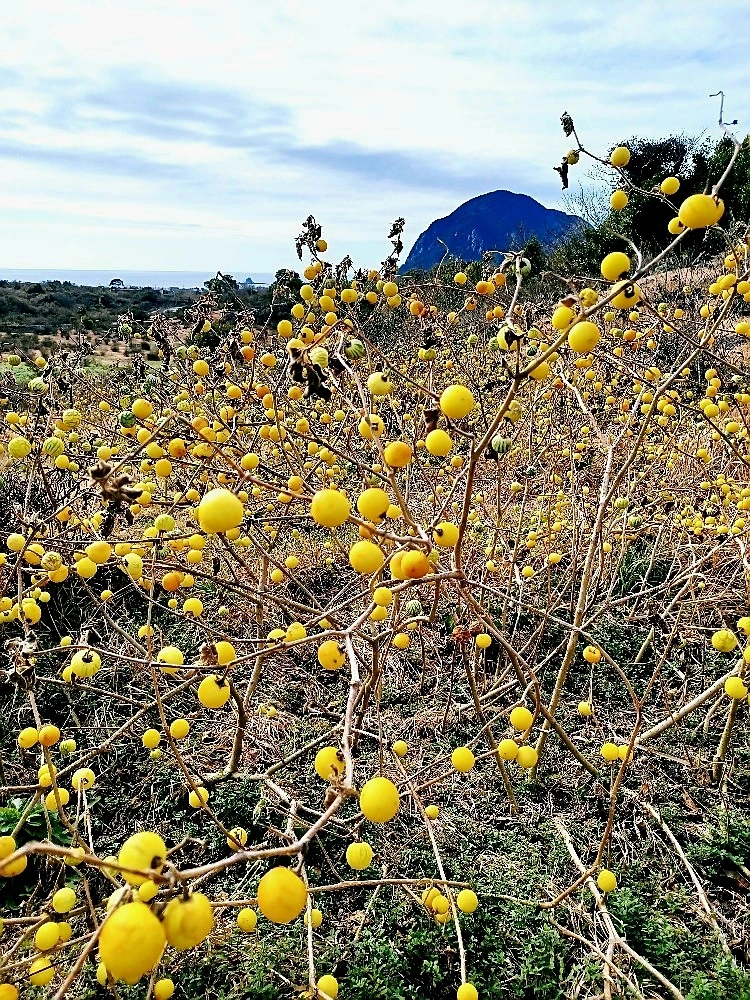 곶자왈 산자락이나 숲으로 번진 그 식물은 키대로 자라 지금은 잎 지고 노란 열매만 오소소 매달려있다.