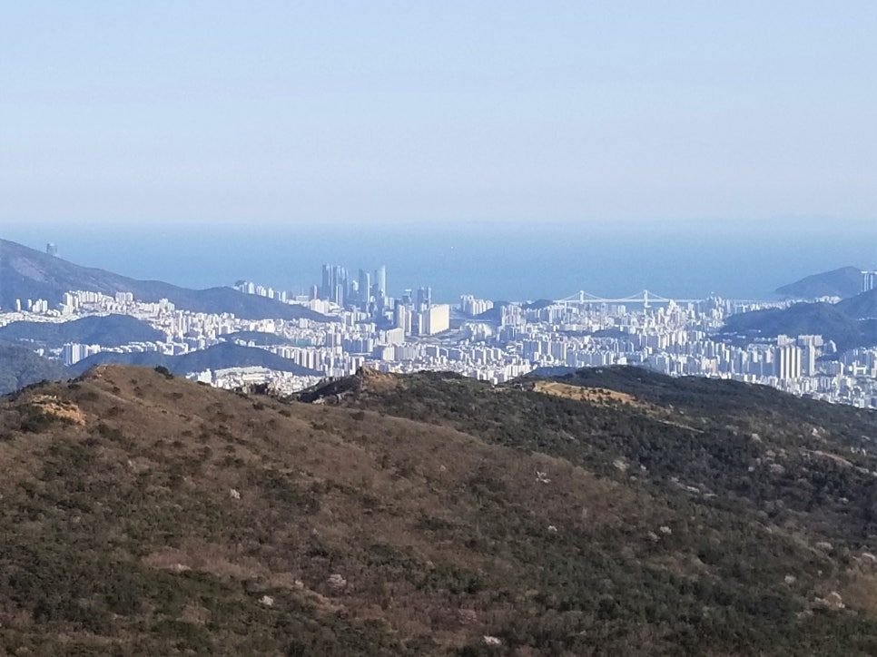 광안대교며 마린시티도 저 아래 엎드렸고 둥그스름하게 부풀어 오른 기장 쪽 동해도 내려다보인다.
