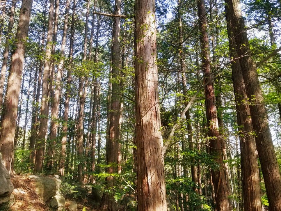 쭉쭉 뻗은 편백나무 기상 청푸르며 힘찬 계류 소리 청량해 이 누리길은 곧잘 명상길이 되어준다.