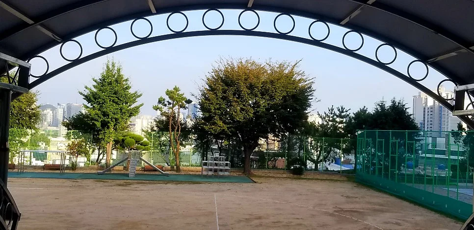 교문과 교사는 그대로이지만 코로나로 원격수업에 들어가 학교는 텅 비어있었고 운동장 옆에 나래관이라는 산뜻한 건물만 눈에 띄었다.