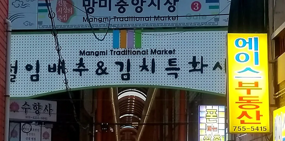 새롭게 변한 건 망미시장통으로 절임배추와 김치특화시장으로 자리매김되며 아케이드로 현대화시킨 신식 시장이 되어있었다.