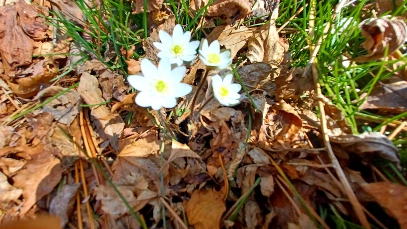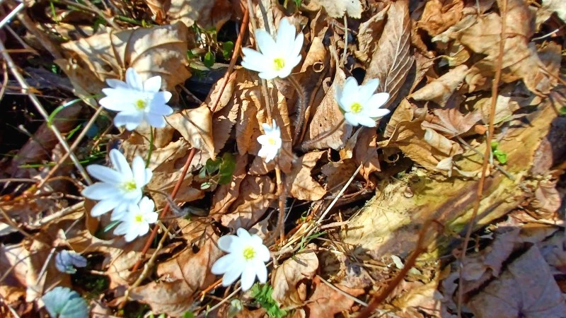 키 낮추지 않으면 시선에 잡히지도 않게, 누런 가랑잎 새새 싸라기처럼 보일 듯 말 듯 점점이 핀 노루귀. 노루귀 가냘프면서도 고 앙증스러운 자태라니. 겨울의 잔해를 채 떨구지 못한 나목 천지인 한라생태숲 탐방은 복수초, 노루귀와 상견례 가진 것만으로도 충분히 흔감스러웠다.