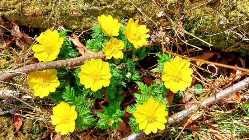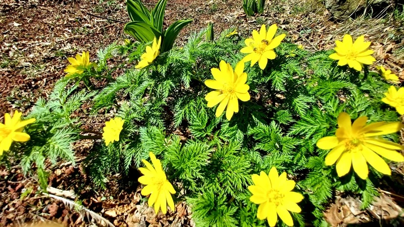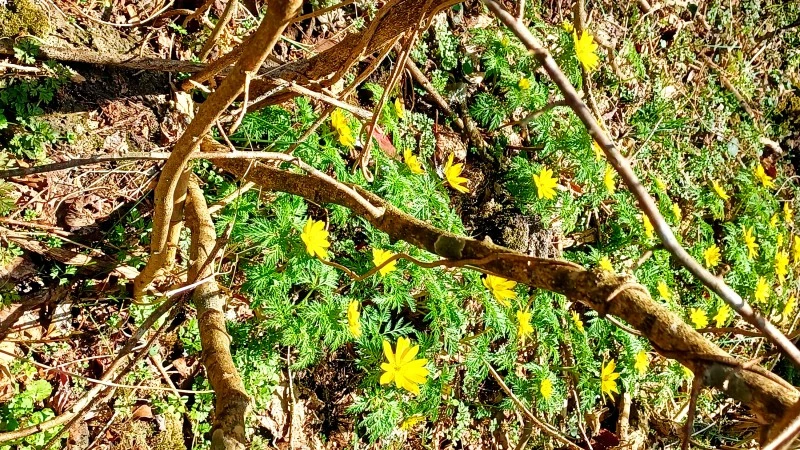 생태숲 초입에 유독 빛나는 꽃이 있어 사진에 담으며 꽃 형태가 복수초를 닮았다 싶긴 했다. 하지만 복수초 잎새를 사진에서 본 바 없어 초록 이파리 소복한 그 풀꽃이 복수초인지 자신 없었다. 긴가민가해 검색을 해봤더니 그럴싸, 이번엔 확실히 하자 싶어 숲해설사에게 물어봤다. 복수초가 틀림없었다. 해설사 분이 덧붙이길, 새하얀 노루귀도 피어있으니 챙겨보세요.
