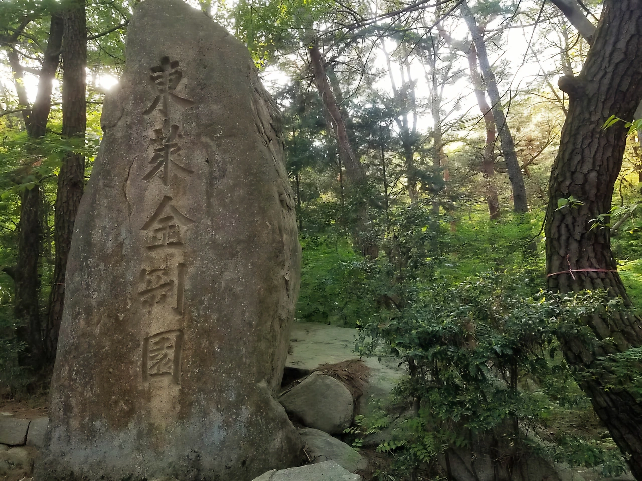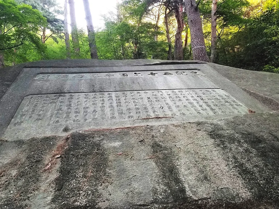 김일성 기리는 문구 벌겋게 새겼듯 여긴 거대한 바위에 일인들이 기념판 만들어 한자와 일본어를 섞어 무어라 줄줄 새겨놓기도 했다.