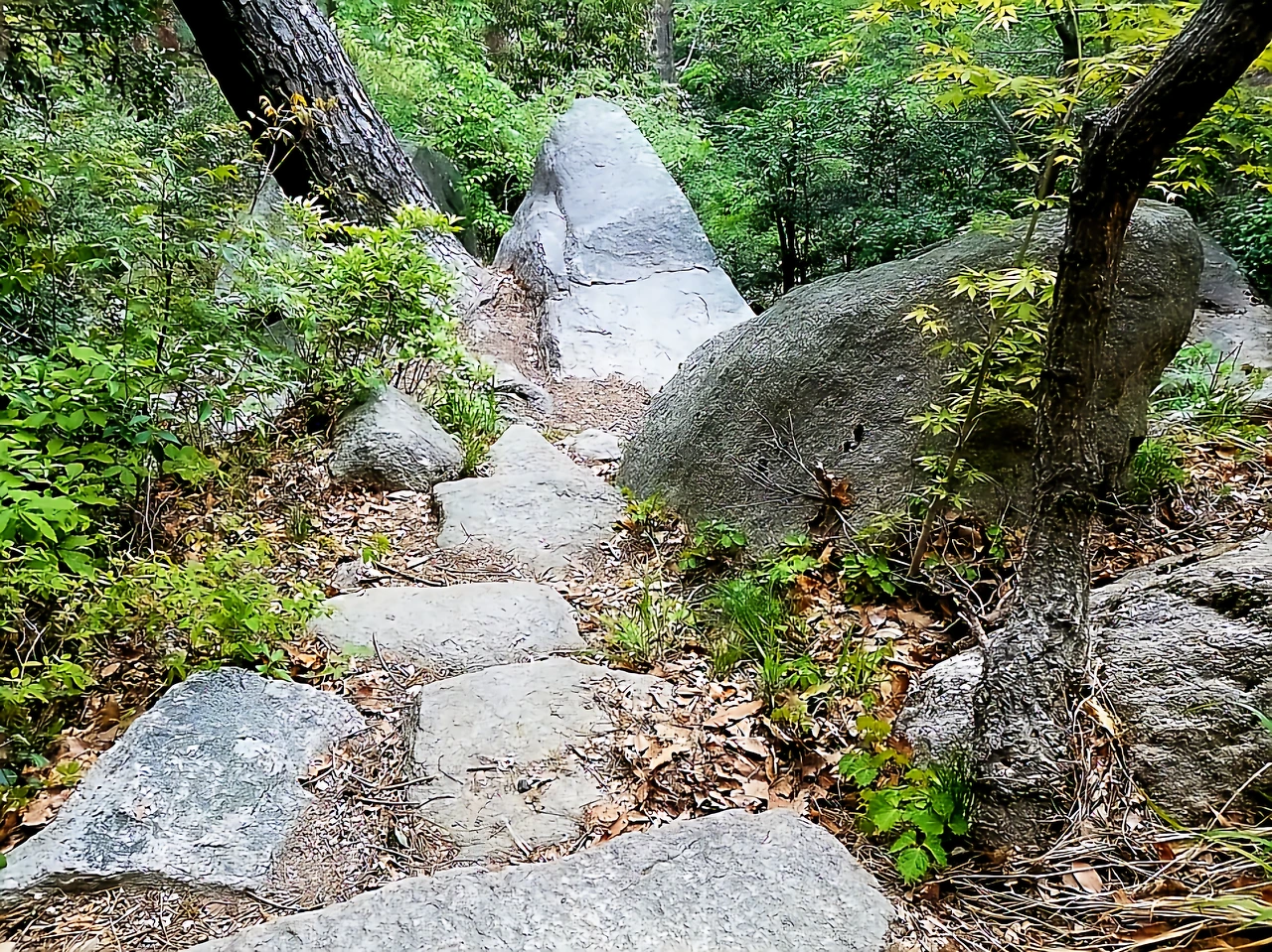 정상에 올라가면 평평한 고지에 길게 늘어선 석성인 산성이 기다리듯 어딜 가나 걸리는 게 크고 작은 바위다.