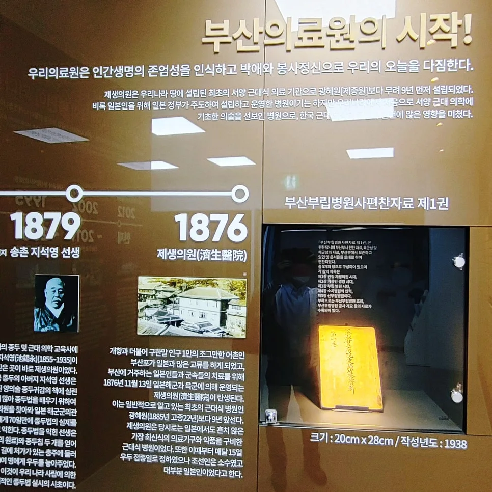 이는 진료를 마치고 홀가분한 기분으로 수납처에서 순서를 기다리다가, 일층 코너에 상세하고 체계적으로 만들어 놓은 부산의료원 연혁을 훑어보다 알게 된 내용이다.