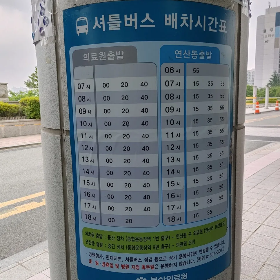 연산 로터리에서 지하철을 내려 16번 출구로 나와서 500미터 정도 직진하면 의료원행 무료 셔틀이 기다려준다.
