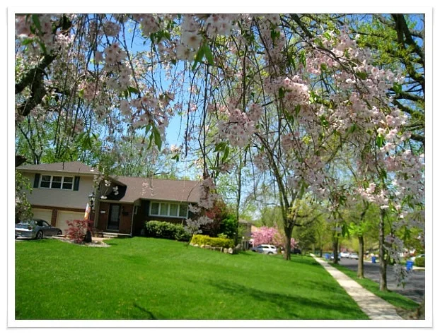 민들레 하나 없이 잔디가 유독 고르게 잘 가꿔진 이웃, 도그우드도 함빡 하얀 꽃을 피웠고 튤립이 한창이네요