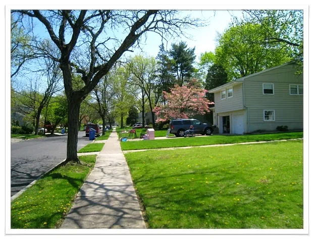 쓰레기 수거일이라 길거리 양 켠에 파란 통이 보이네요, 오늘은 재활용이 가능한 리사이클 통을 치우는 날이지요