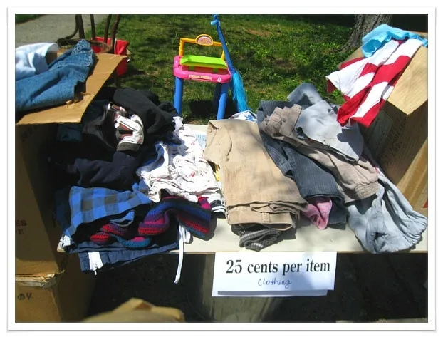 단돈 25센트에 가져가라는 헌 옷가지들도 뜰에 나앉아 모처럼 햇볕바라기 중입니다