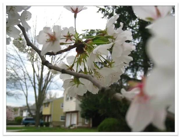 주말의 고요가 내리는 아침, 곧이어 분분히 질 벚꽃 사이로 보이는 마을 한켠 우리집은 편안한 휴식에 들어가 있네요