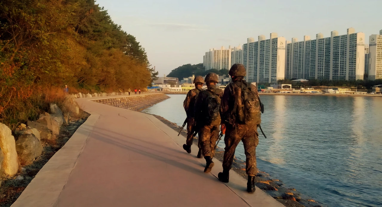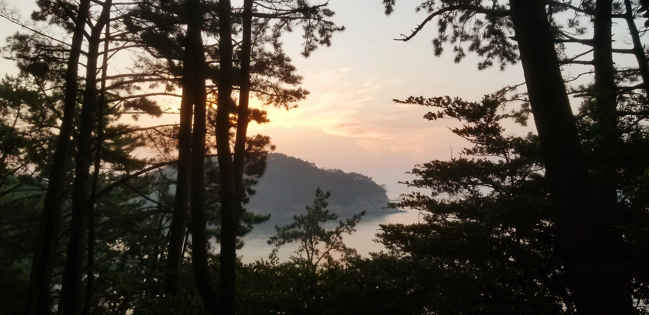 그때 겹겹의 적요로움을 깨는 발자국 소리. 얼룩무늬 군복에 총을 멘 사병 셋이 어둑신한 숲에서 내려온다. 뜻밖의 시추에이션이 당황스러워 바짝 움츠러든다. 신문에 대문짝만 하게 게재됐던 사진으로 기억도 생생한 1983년 다대포 무장간첩 침투 사건이 떠오른 때문이다. 국군에 발각되어 간첩선은 격침되고 두 명의 간첩이 생포되기까지 총격전이 벌어졌던 장소가 여기다. 앳된 얼굴을 마주하는 순간 긴장감이 사라진다. 초소에서 밤샘 근무를 마치고 귀대하는 군인들이다. 지금 여기 올라가는 거 혹시 위법인가요? 아닙니다, 올라가셔도 괜찮습니다! 손자뻘 되는 병사가 길을 터주며 답한다. 그들은 해안길로 내려서자 척척 줄맞춰 걸으며 멀어져 갔다. 잡목과 키 큰 해송 밀밀히 들어서서 하늘 가리고 있는 언덕길이 거기서부터 시작된다. 솔잎 사이로 여명의 빛이 부옇게 비친다.
