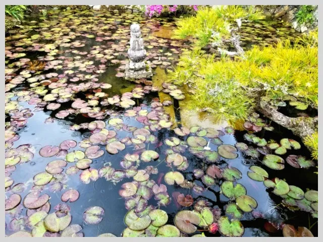 일본에 닿은 첫날 봄비가 안개이듯 부드러이 내렸다. 여행지에서 만나면 과히 반갑지 않으나 장소에 따라서는 그윽한 운치를 돋워주기도 하는 비. 내밀한 감성의 현을 슬몃 튕기는 고즈넉함이랄지 유현함도 끌리는 데다 눅눅한 누기는 기분을 차분히 가라앉게 해 주었다. 작은 연못에 비 내려 수없이 동그란 파문 그리면서 수련 가녀린 이파리 출렁대는 고찰. 겨자빛 새잎 몽글거리며 피어나는 서정적 풍경이 액자 속 그림 역할을 해서일까. 깊은 선정에 든 구도자이듯 그 적요에 묻혀 지그시 눈 감은 채 오래 묵상에 잠기고 싶기도 한 그런 곳.