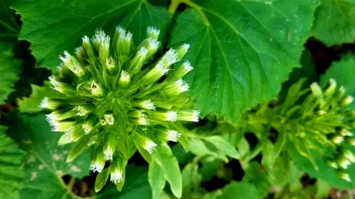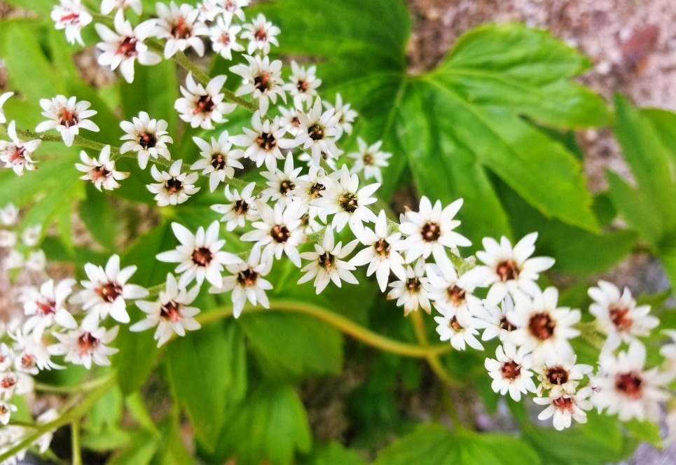 소담스러운 머위꽃에 백금 브로치같이 또렷한 돌단풍꽃도 가끔 보이는 데요.