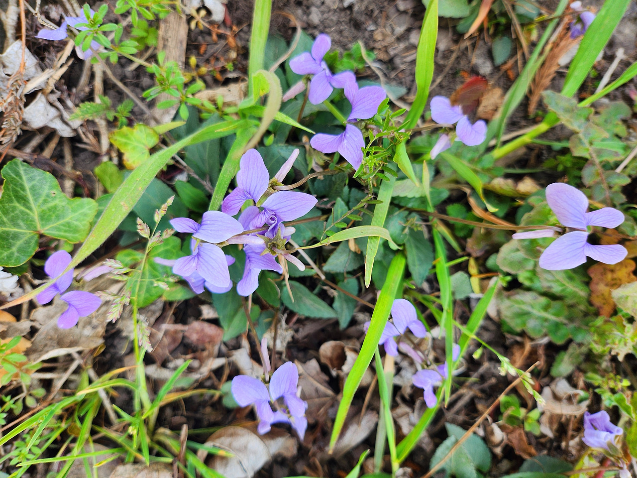 꽃색깔로는 귀티 나게 고상한 하늘색 봄까지꽃이며 잎새 동글납작한 연보랏빛 제비꽃도 찾아냈어요.