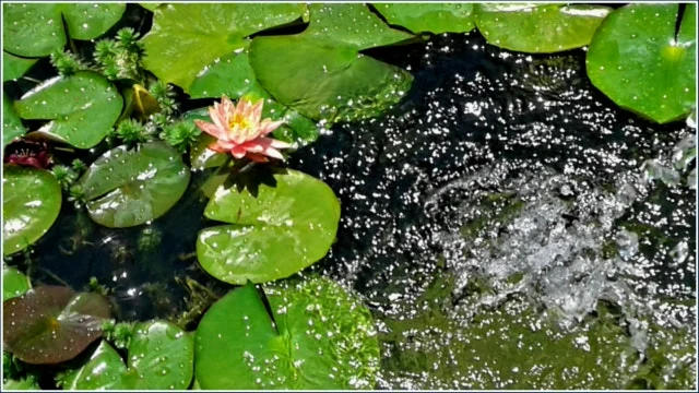 분수 물줄기 낙하하자 일렁대는 연못, 자태 단아한 수련 그만 이리저리 황망스레 나붓댔다.