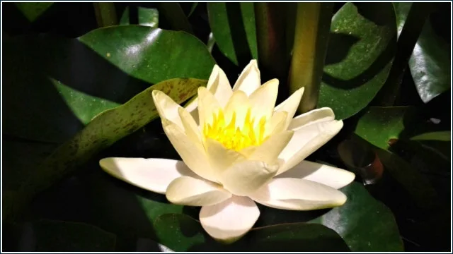 폭염 고스란히 내리는 분수대 연못에는 빡빡한 수초 사이로 수련 함초롬 피어있었다.