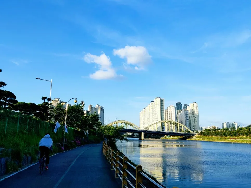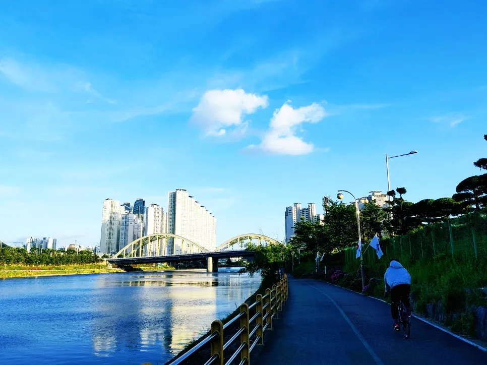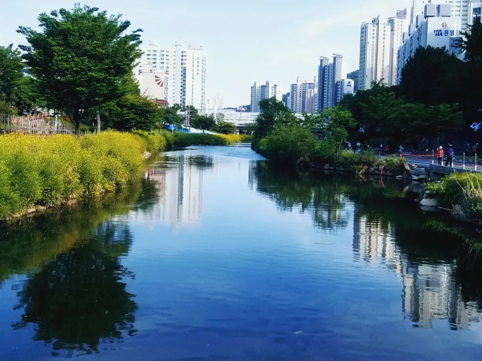 생태계 살아나 물 맑으니 물바람 푸르러 좋고 오후녘이면 통통 튀어 오르는 숭어 점프 대회도 볼만한 수영강.