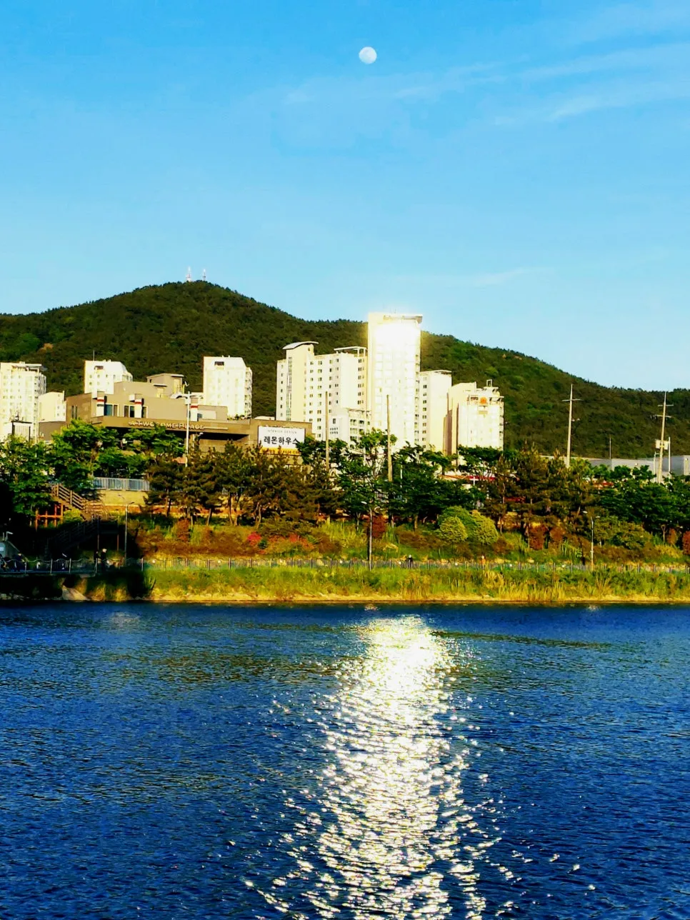 휘영청 달 거느린 채 해가 지는 줄도 모르고 데크길따라 걷다 보니 빌딩 숲에 어느덧 불빛.