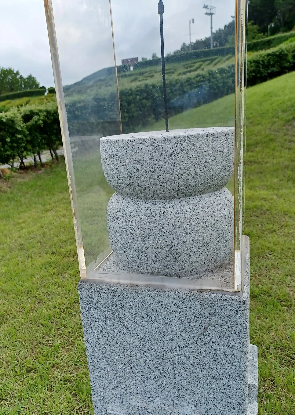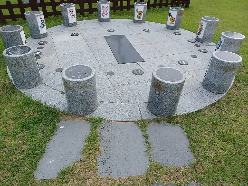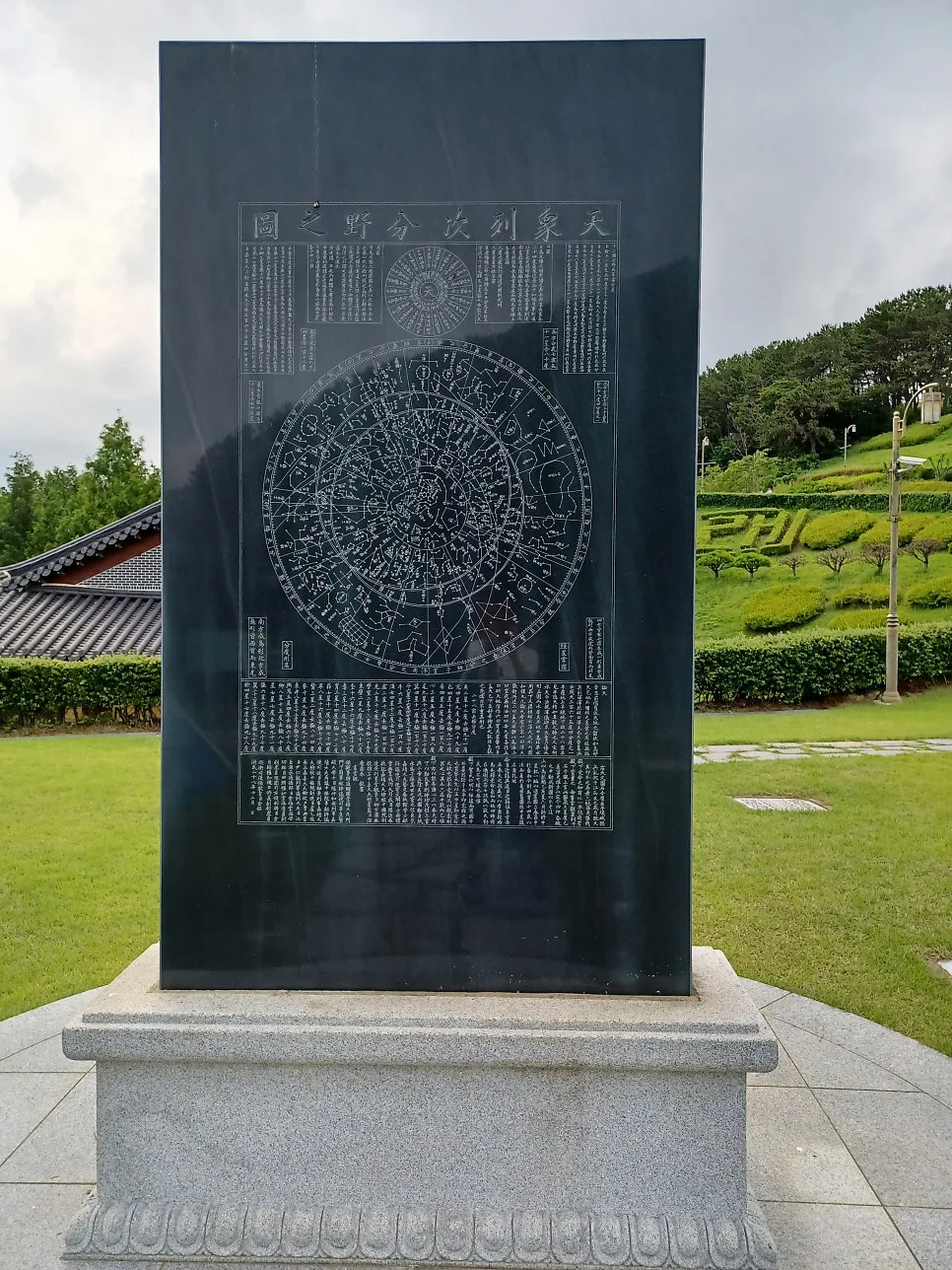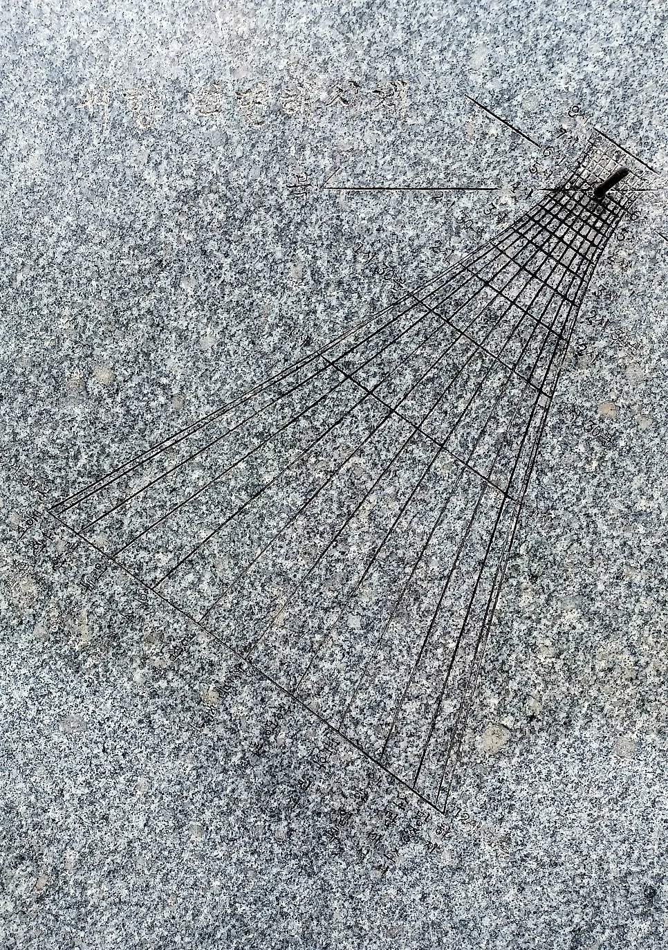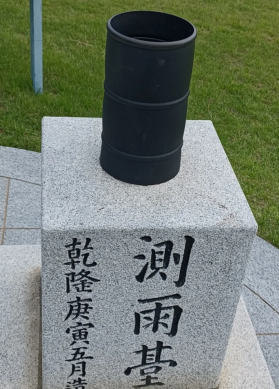 석조로 만든 수표로 하천 수위를 재는 측정계/ 양측은 동양 해시계와 서양 해시계