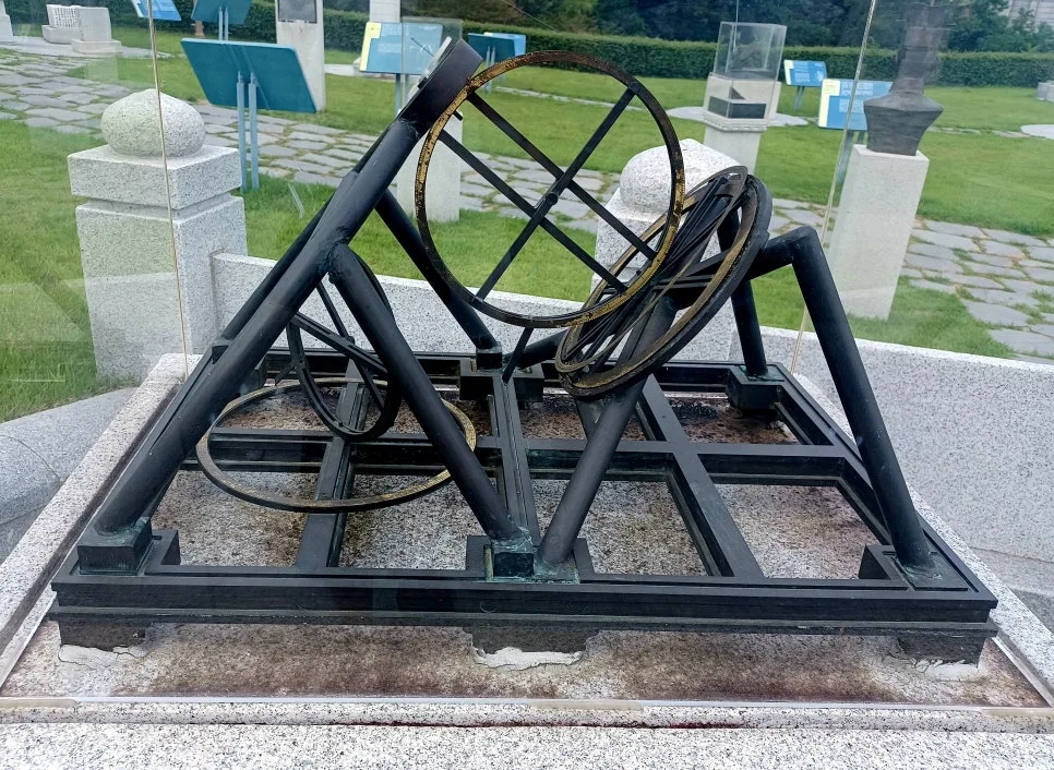 천체의 운행과 위치 그리고 적도 좌표를 관찰하는데 쓰이던 천체 관측기구인 혼천의/밤과 낮의 시간을 재는 일성정시의