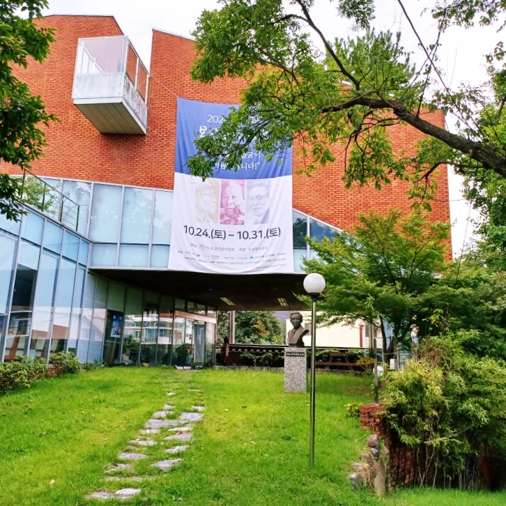 붉은 벽돌 건물인 기념관 입구의 선생 흉상, 거칠면서도 담담한 수식어에 부정적인 문체와도 닮아 있는 표정 결연스러웠다.
