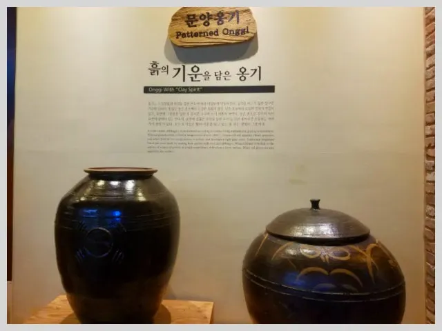 옹기박물관에 들어서면 맨 먼저 기네스북에 등재된 세계 최대 규모의 옹기가 반긴다. 2미터가 넘는 거대 항아리는 2년 가까운 제작 여정을 거치는 동안 다섯 번의 실패를 걸쳐 여섯 번 만에야 겨우 성공했다 한다. 이어서 땅밑에 반쯤 묻힌 옹관이 보인다. 항아리 모양의 토기를 사용한 관으로 신석기시대부터 사용되었다는 옹관이다. 용도에 따라 혹은 소성 방식에 따라 체계적으로 전시된 여러 종류의 옹기들. 각 지역에 따른 특성도 있었는데 옹기 생김새가 기후나 환경에 맞게 약간씩 차이가 났다. 이를테면 일조량이 적은 지방 항아리는 햇빛을 많이 받고자 입 부분이 넓고, 기후가 따뜻한 남쪽 지방은 입지름이 좁은 대신 배가 불룩하게 나온 형태였다. 평야가 많은 전라도 항아리는 곡식 저장을 위해 크기가 풍만한가 하면 제주지방은 태토에 철분 함유량이 높아 붉은 빛깔을 띠며 식수 운반용 물허벅이 발달했다.