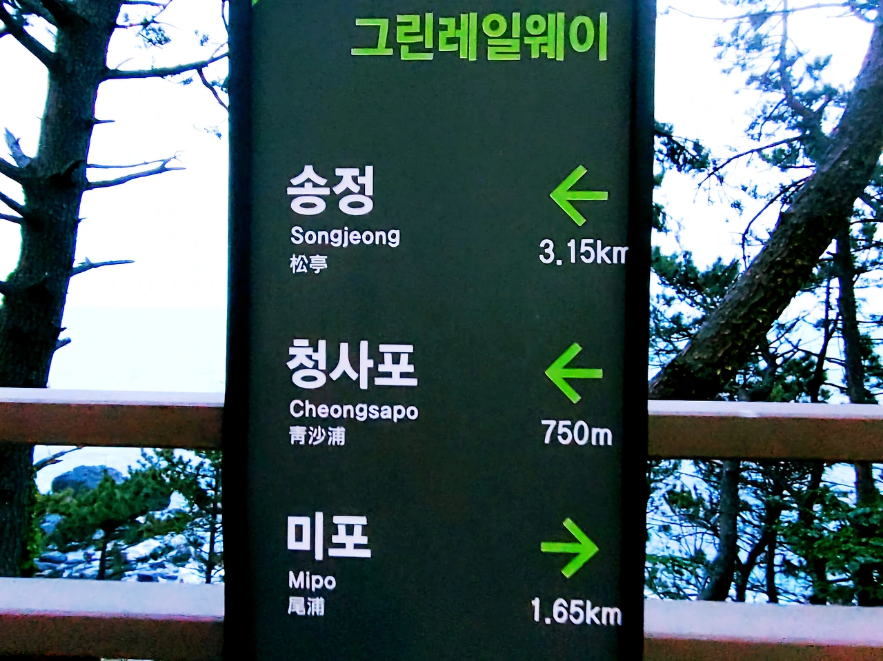 전면 가득 탁 트인 바다는 그러나 자주 소나무 가지에 걸려 조망권 흩뜨렸으므로 차라리 그린 로드 걷느니만 못한 거 같았다.
