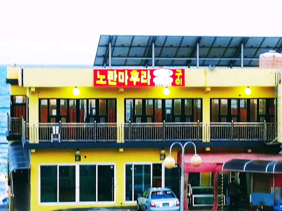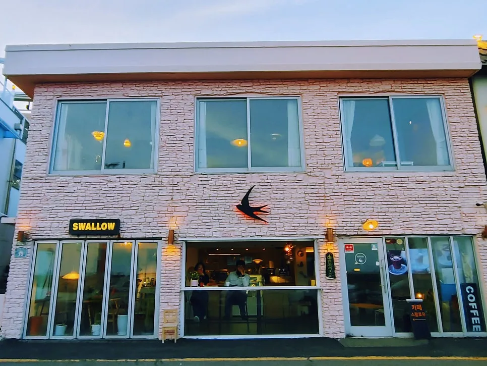 다른 해안지역 카페들 으리으리한 규모에 반해 소박하고 단순한 외형을 가진 건물들, 어느새 노랗게 밝혀진 조명이 온화하고 부드러웠다.