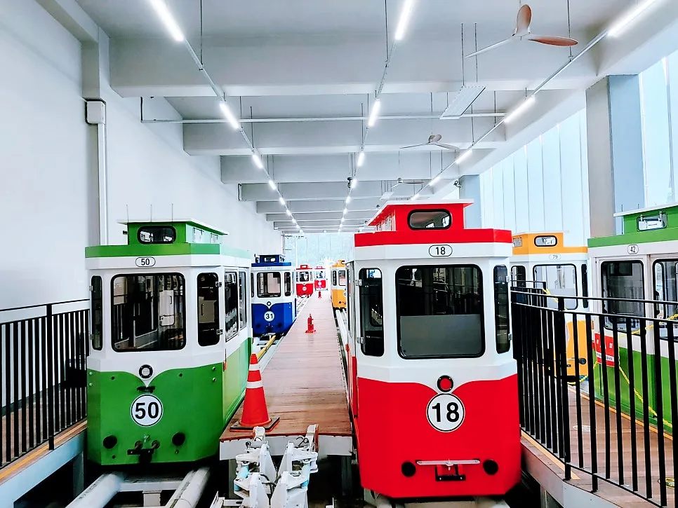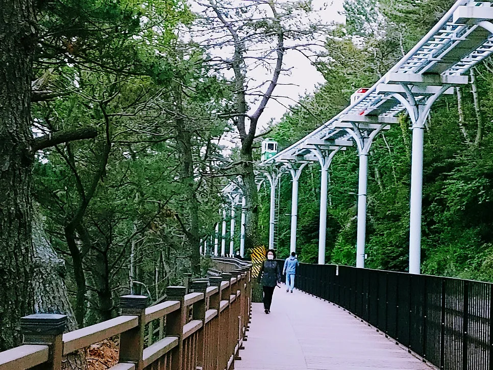 단선인 기찻길, 그 위 공중 레일을 타고 색색의 스카이 캡슐이 간격 바투게 오갔다.