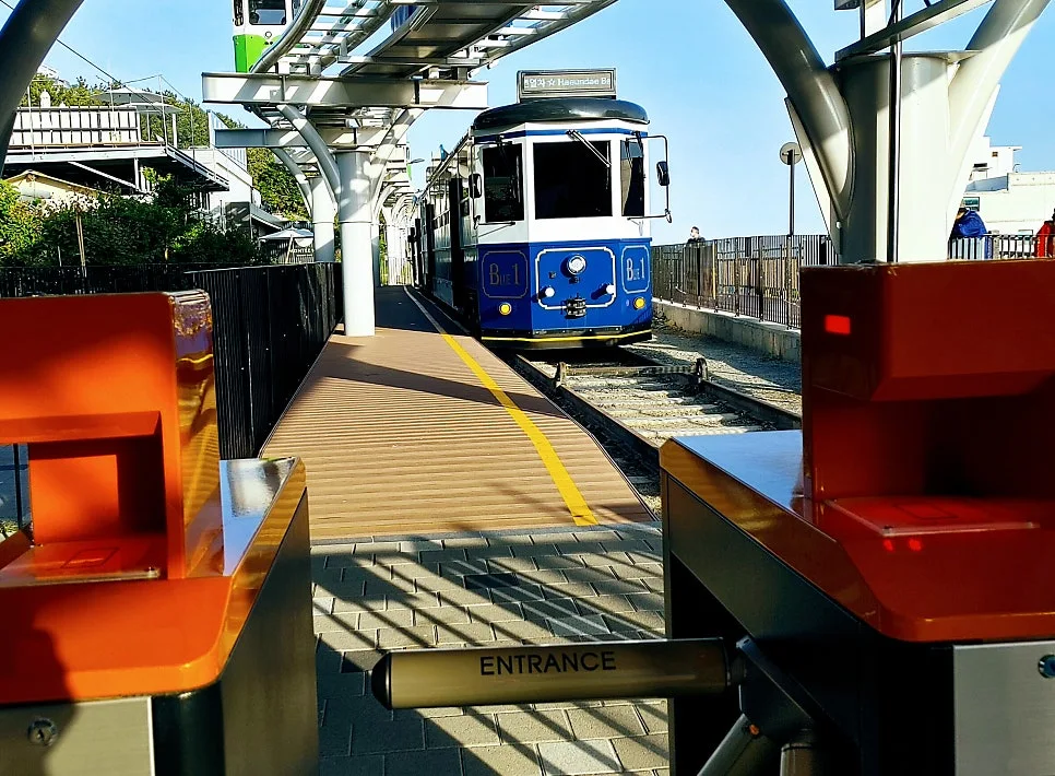 역을 나서자 맞은편에서 들어오는 해변열차가 보였는데 차단기 내려지면 울리는 댕댕 소리 들렸던지?