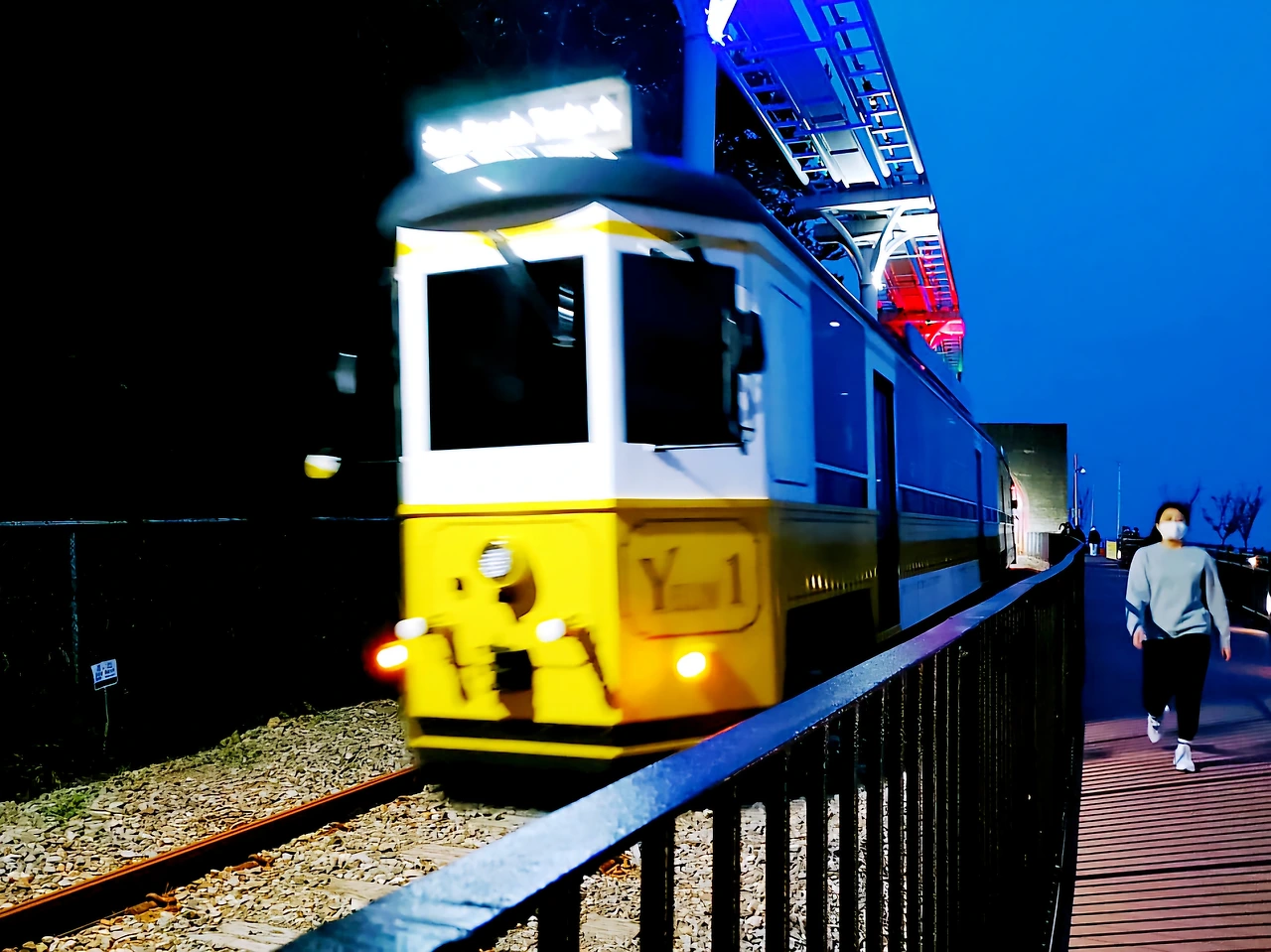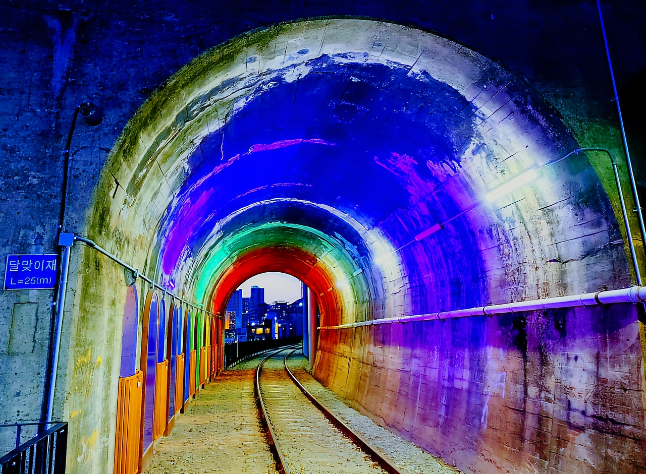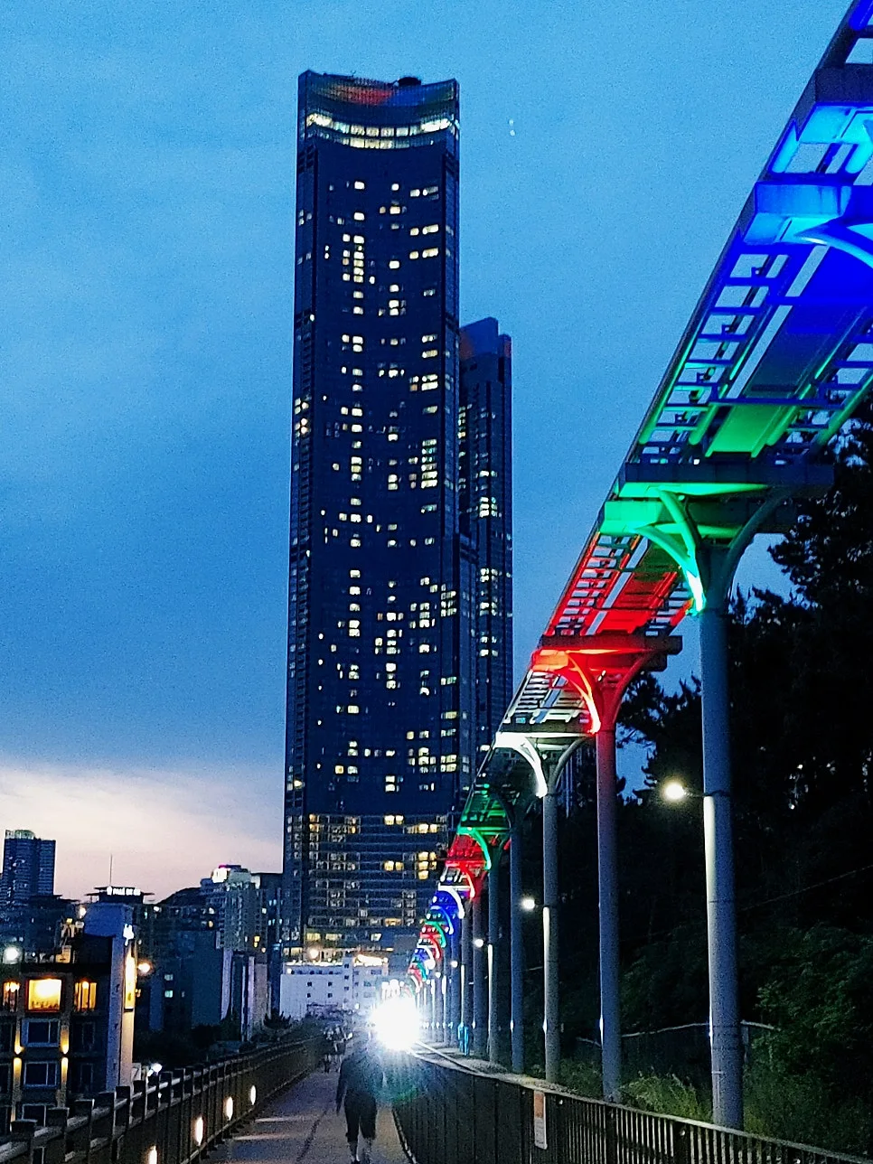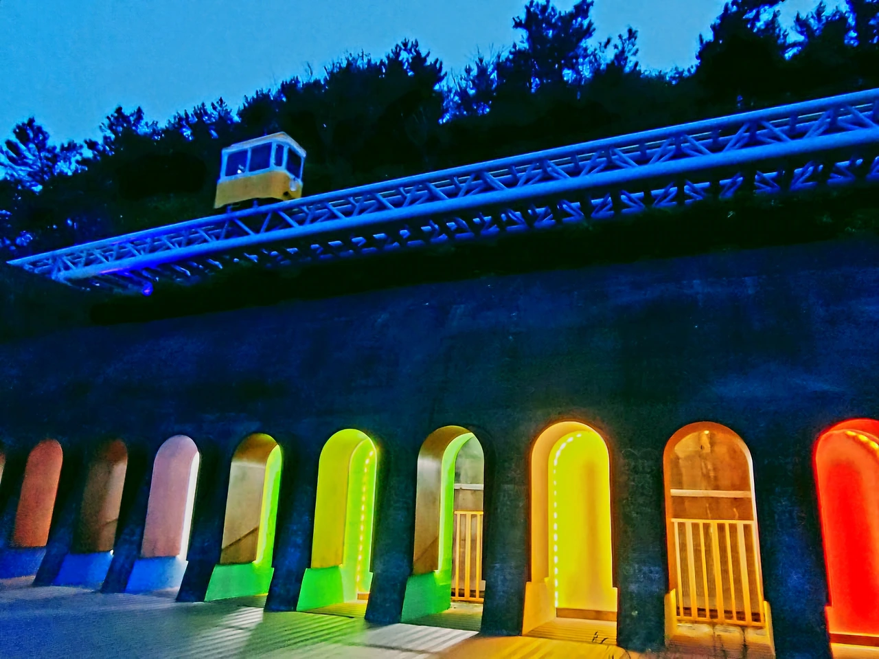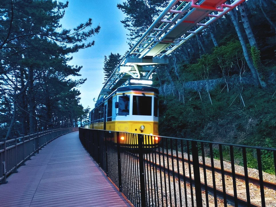 모노레일에도 조명 색색으로 밝혀지고 달맞이 터널은 밤이 되니 고운 무지개처럼 피어난다.