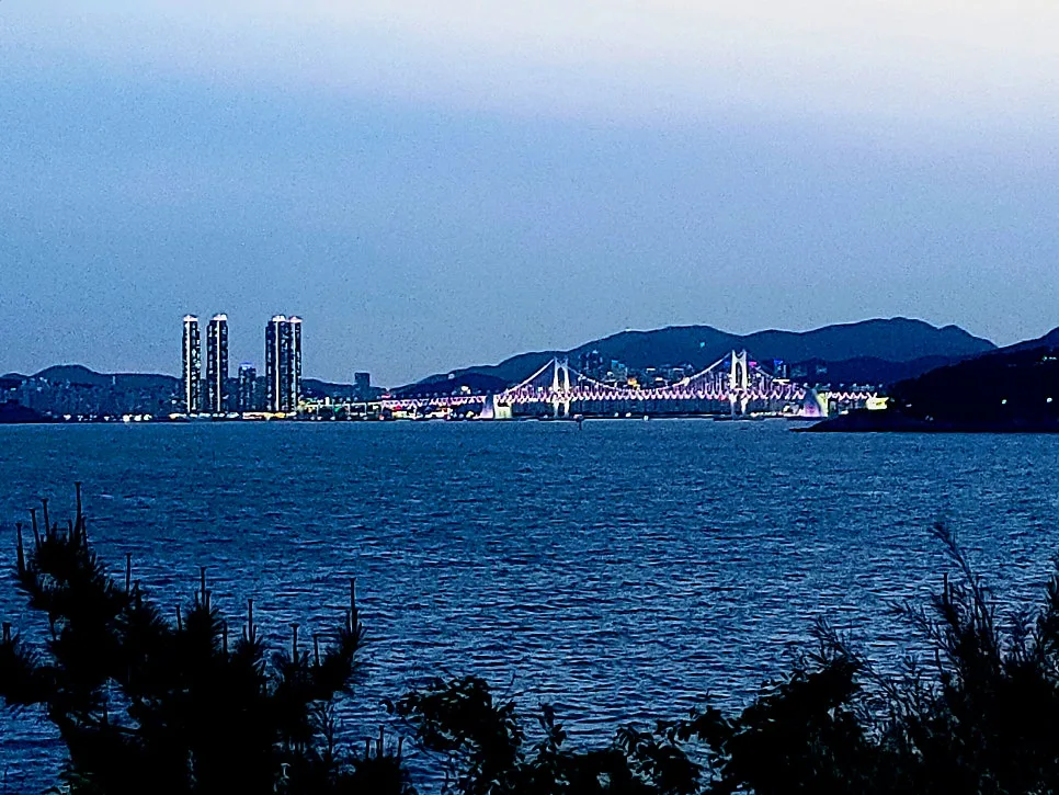 청사포에서부터 한껏 여유 부리며 느릿느릿 걸었어도 산 모롱이 돌자마자 광안대교와 수영만 불빛이 보인다.