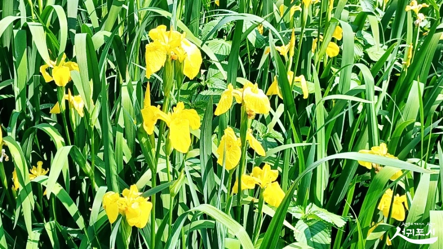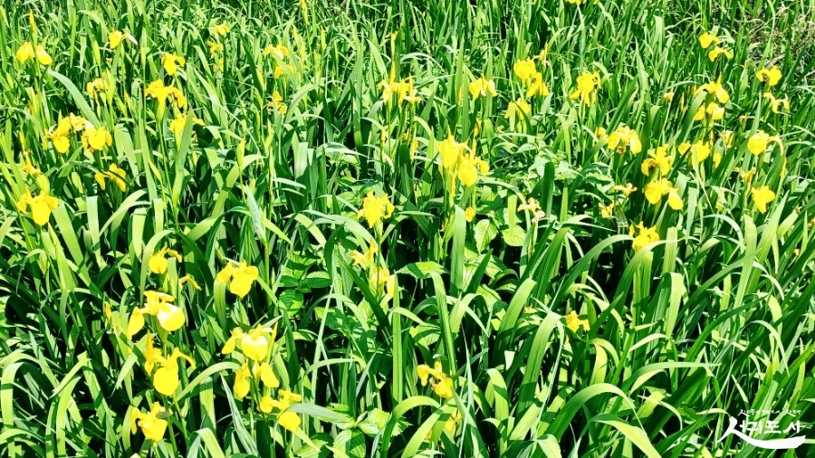 어제 찾아간 생태공원엔 신록 눈부신 물가 따라 조촐히 핀 노랑붓꽃만 가득했습니다.